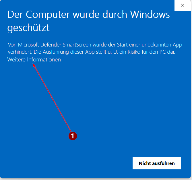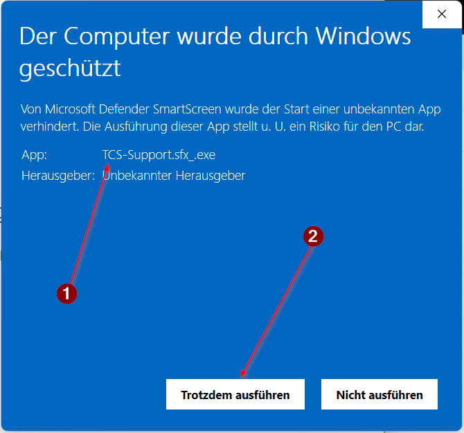 Sollte der Computer diese Meldungenanzeigen, so klicke bitte auf die Texte bei dem Pfeil (1)